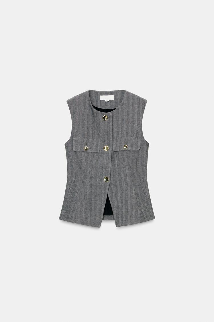 ZARA ЖИЛЕТ «ЁЛОЧКА» РАСКЛЕШЁННОГО КРОЯ, СЕРЫЙ
