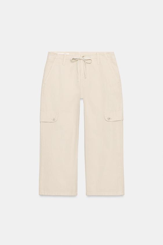 ZARA БРЮКИ КАПРИ КАРГО, КАМЕННО-СЕРЫЙ