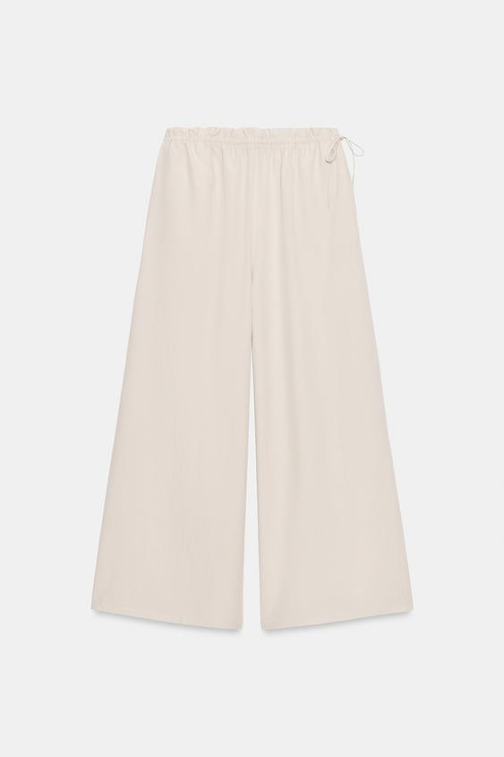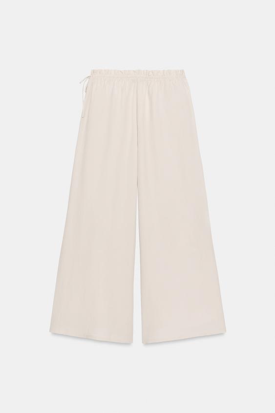 ZARA БРЮКИ ПАЛАЦЦО С ЗАВЯЗКАМИ, СЛОНОВАЯ КОСТЬ
