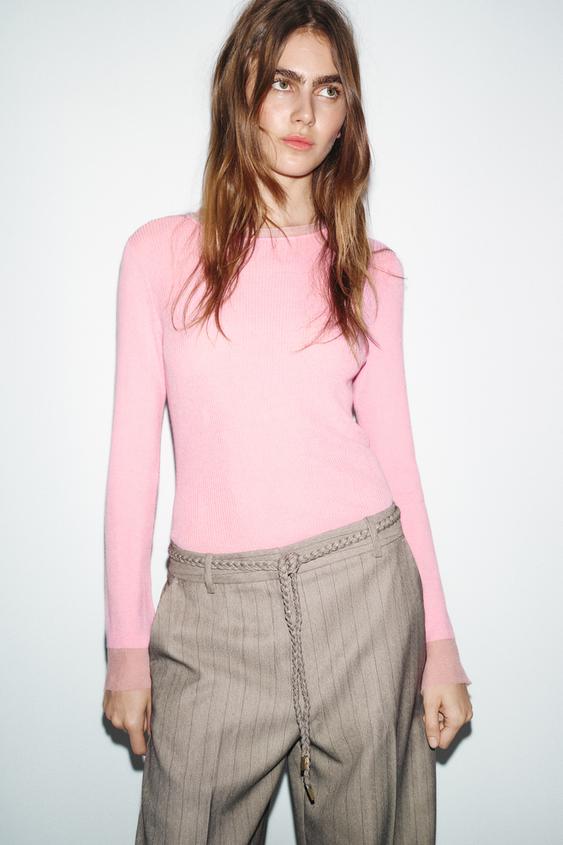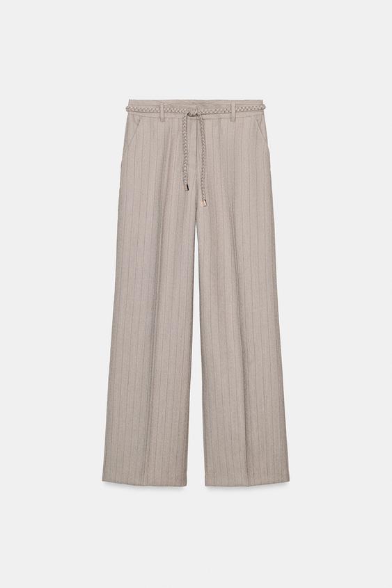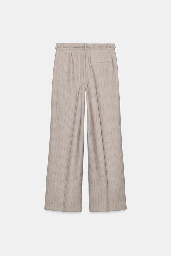 ZARA БРЮКИ В ЕЛОЧКУ С ПЛЕТЕНЫМ ПОЯСОМ, КАМЕННО-СЕРЫЙ
