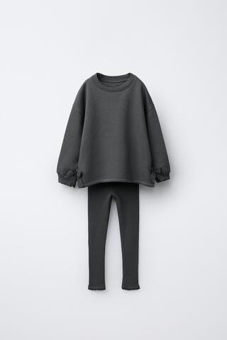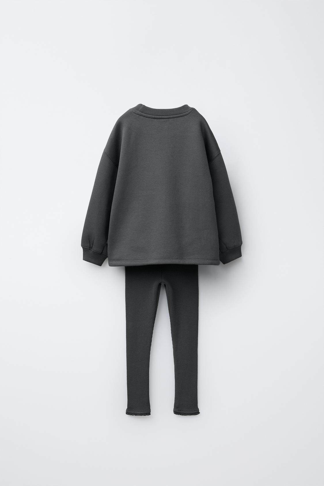 ZARA КОМПЛЕКТ ИЗ ТОЛСТОВКИ С БАНТИКАМИ И ВАФЕЛЬНЫХ ЛЕГГИНСОВ, АНТРАЦИТОВО-СЕРЫЙ