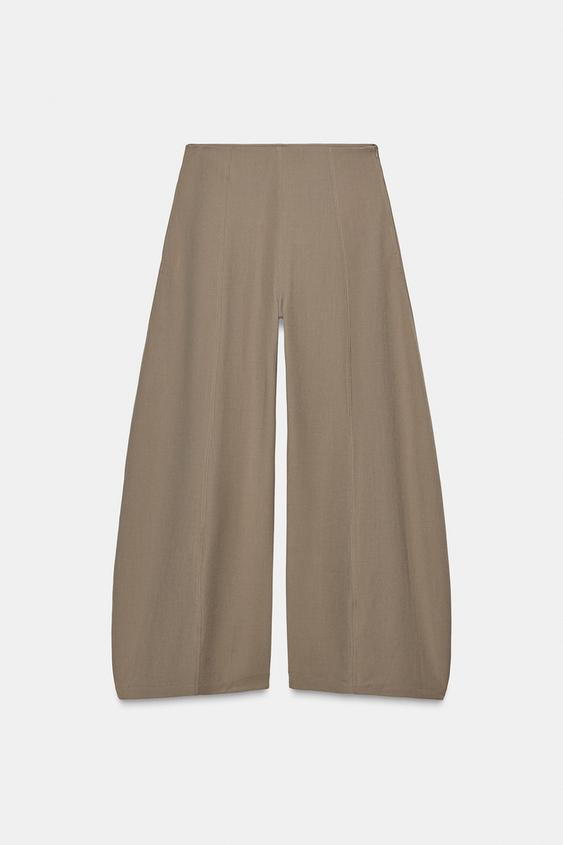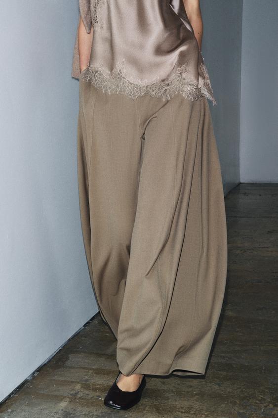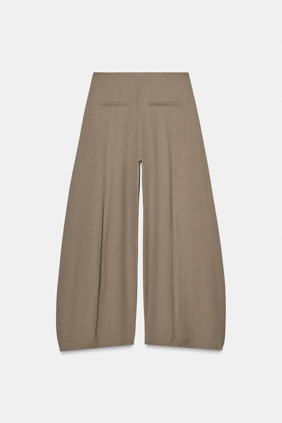 ZARA ОБЪЕМНЫЕ БРЮКИ — ZW COLLECTION, СЕРО-КОРИЧНЕВЫЙ