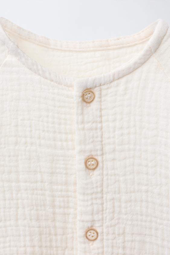 ZARA РУБАШКА ИЗ ТКАНИ БАМБУЛА, ЭКРЮ
