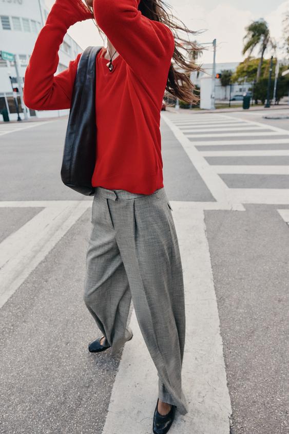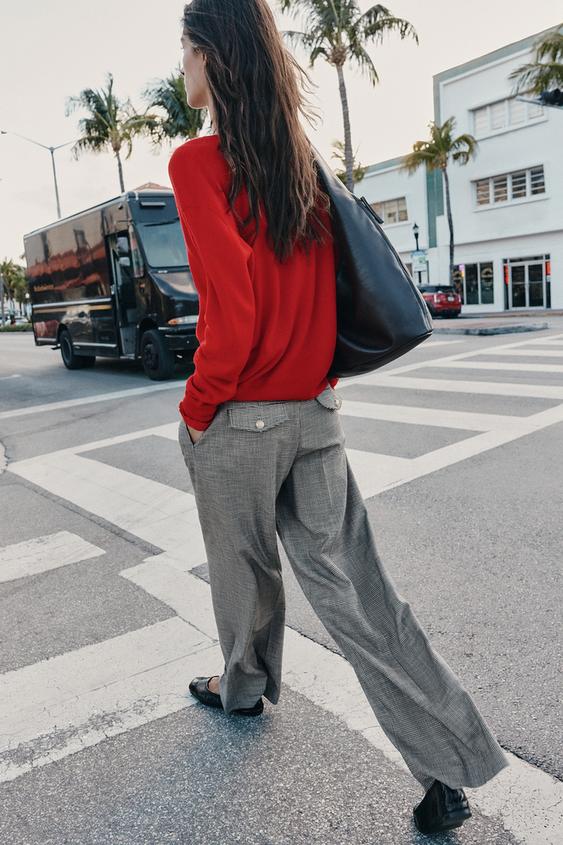 ZARA ШИРОКИЕ БРЮКИ «ГУСИНАЯ ЛАПКА», ЧЕРНЫЙ/ЭКРЮ