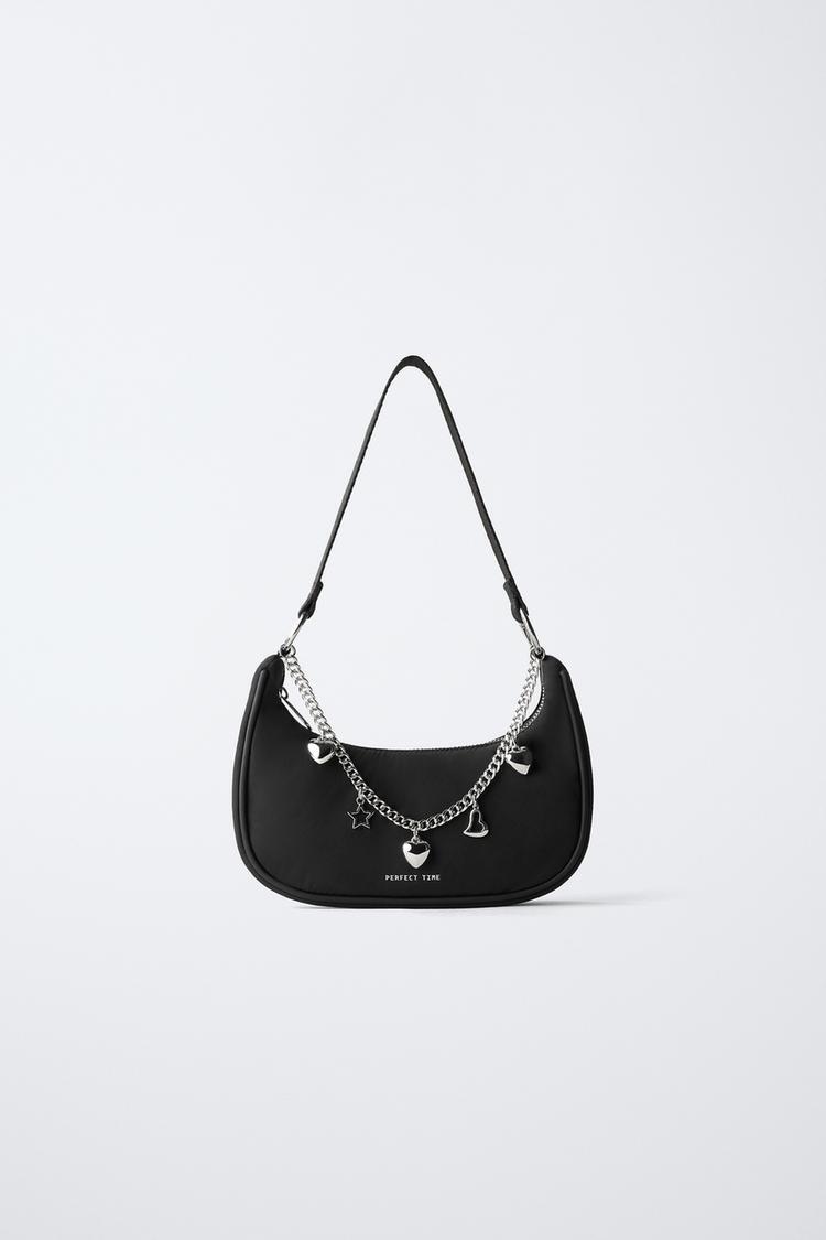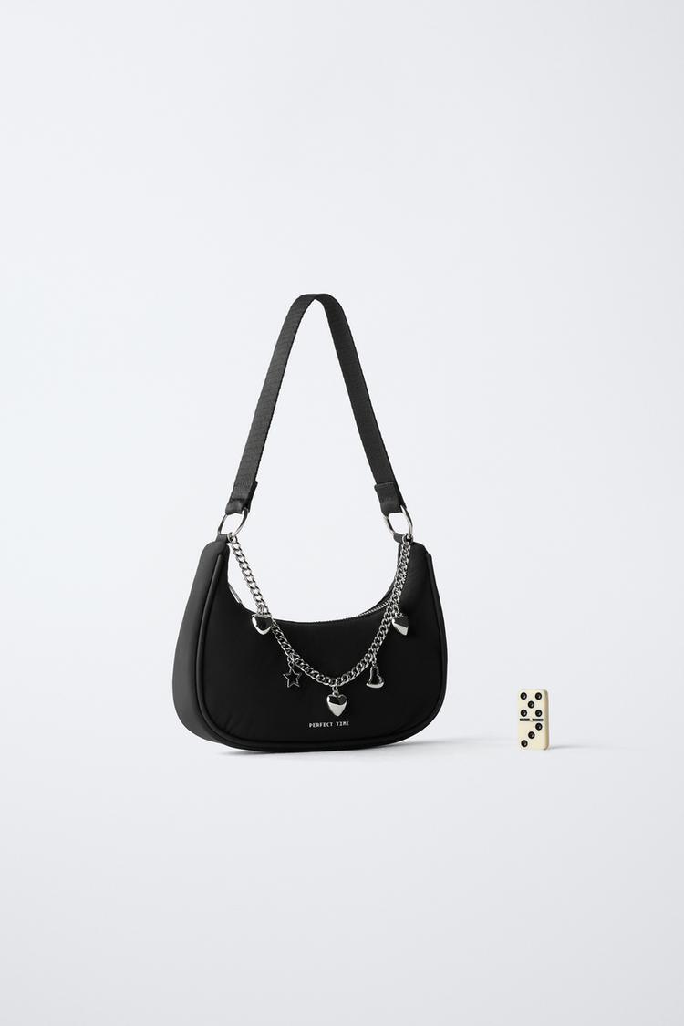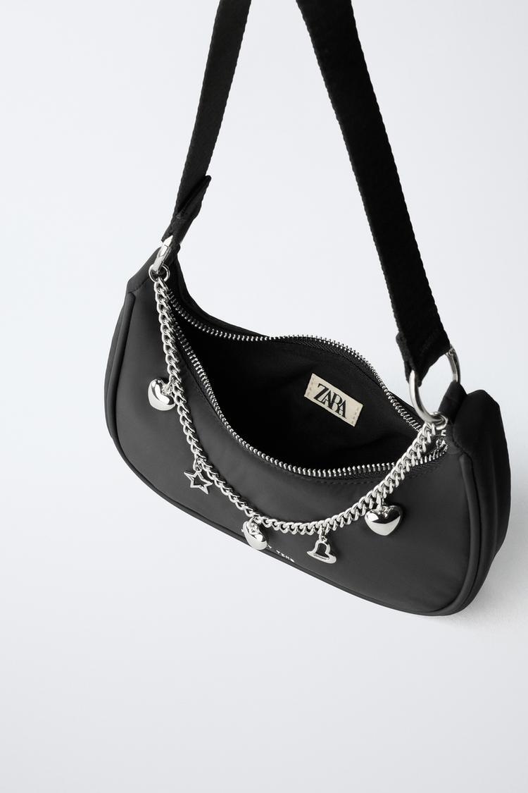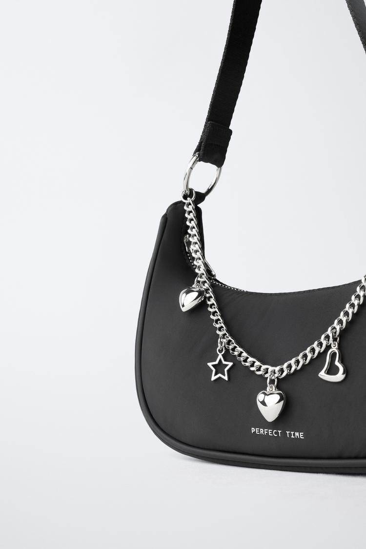 ZARA СУМКА С ПЛЕЧЕВЫМ РЕМНЕМ И ПОДВЕСКАМИ, ЧЕРНЫЙ