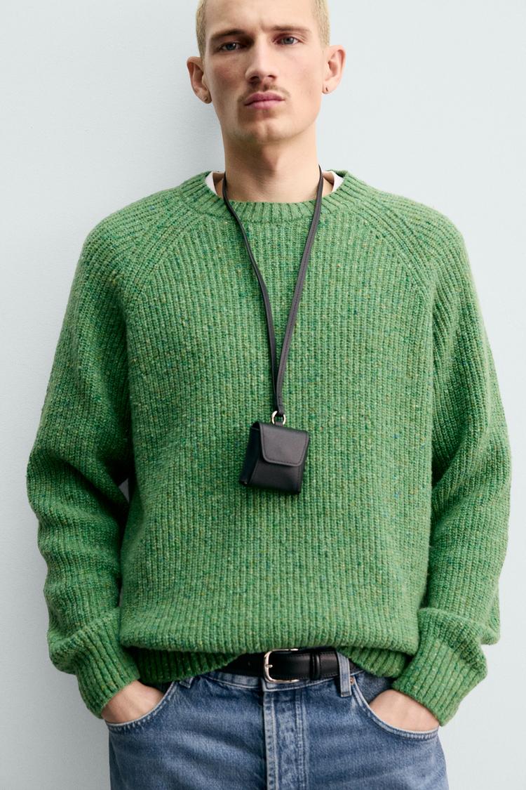 ZARA СВИТЕР ИЗ ЖЕМЧУЖНОЙ ВЯЗКИ, ЗЕЛЕНЫЙ